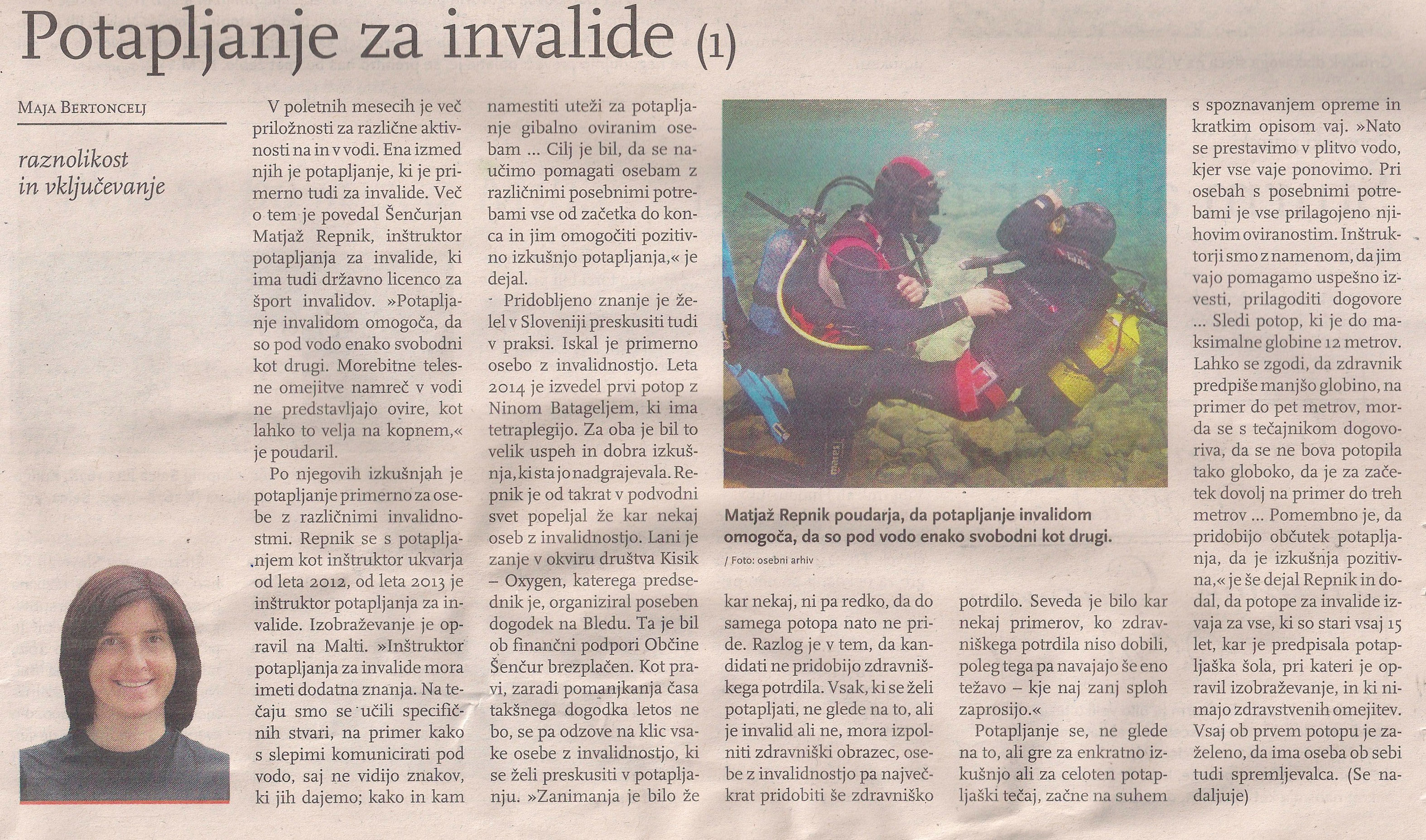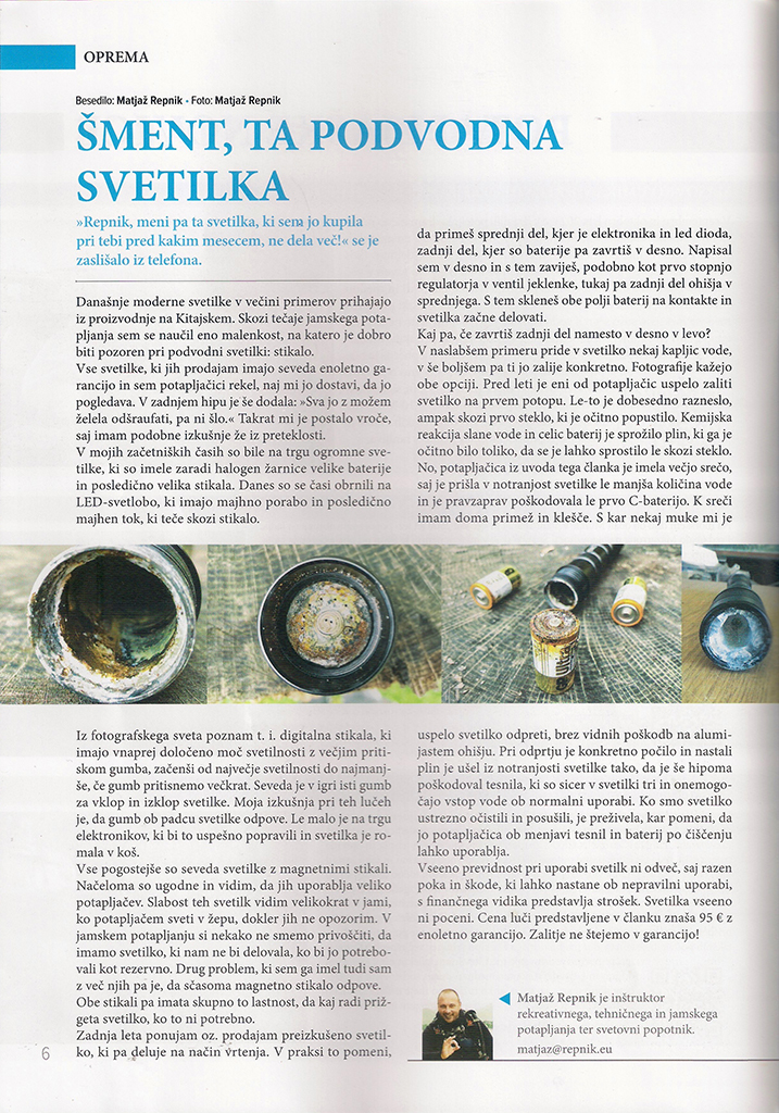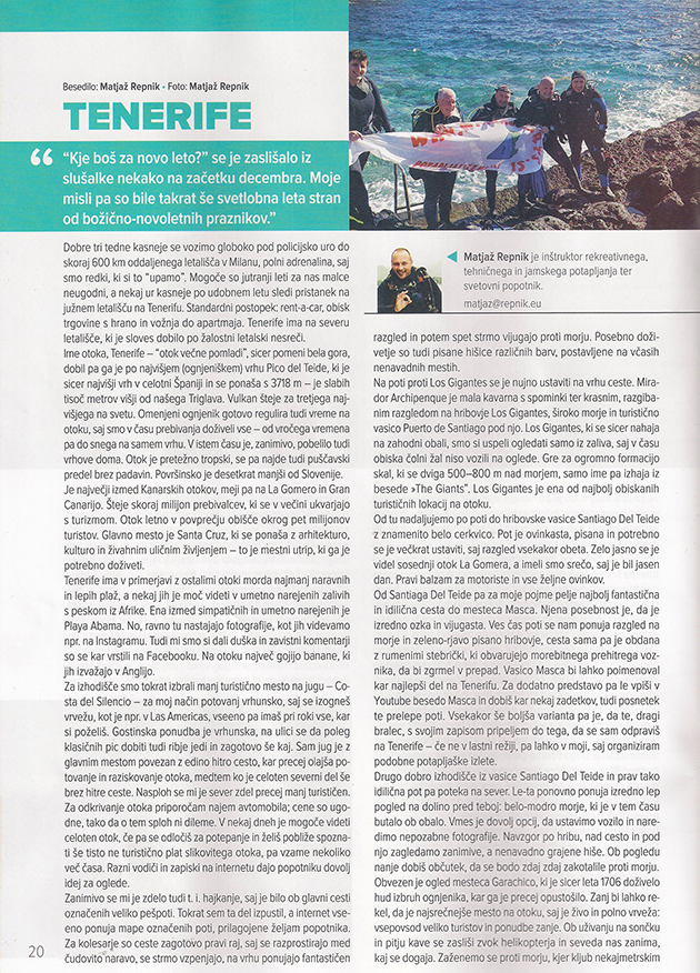 Članek je bil objavljen v 115. številki Potapljaške Revije Potapljač, ki jo izdaja Slovenska potapljaška zveza, marec 2021.