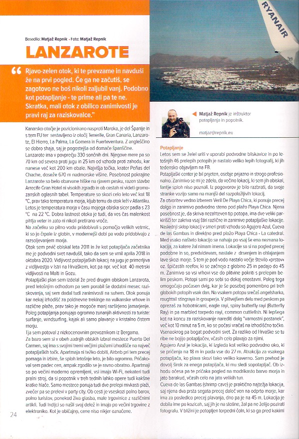 Članek je bil objavljen v 116. številki Potapljaške Revije Potapljač, ki jo izdaja Slovenska potapljaška zveza, maj 2021.