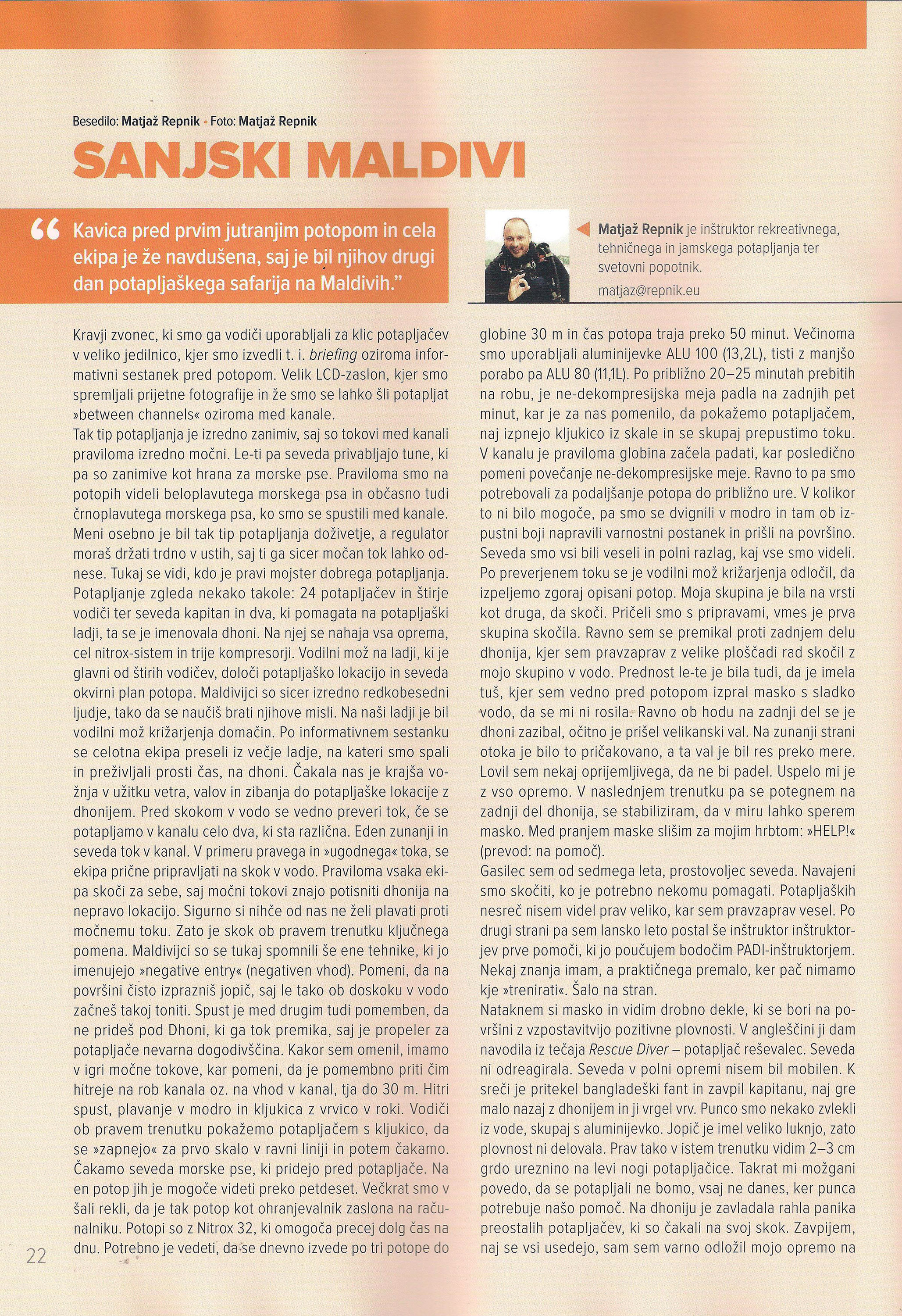 Članek je bil objavljen v 125. številki Potapljaške Revije Potapljač, ki jo izdaja Slovenska potapljaška zveza, november 2022.
