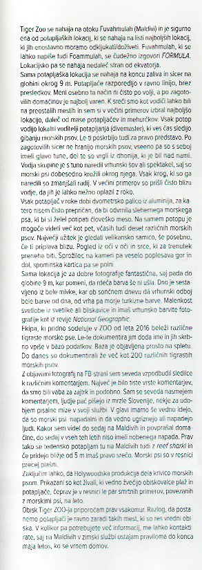 Tiger ZOO priporočam vsakomur na obisk. Razlog, da postanemo potapljači je ravno zaradi takih mest, ki so res vredni obiska. V kolikor pa potrebuješ več informacij me lahko kontaktiraš, na Maldivih v zimski službi ostajam praviloma do konca maja letos, ko se vrnem domov.